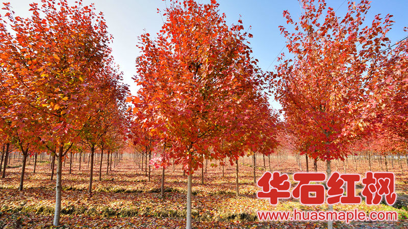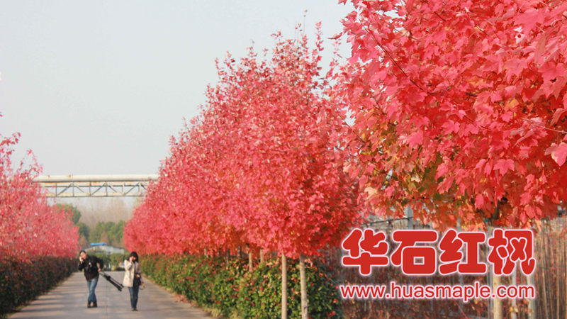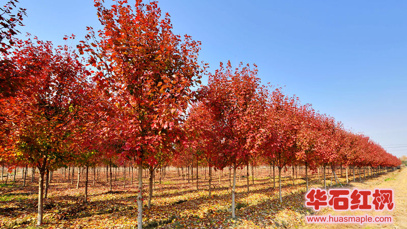 十月光辉的冠形自中等规格始就成球形,萌枝能力特别强,叶子茂密,被人称道。华石十月红枫既可独树成景,亦可片植成林,其树形高大统一的特点非常适合作行道树,在美国有“行道树之王”美誉。